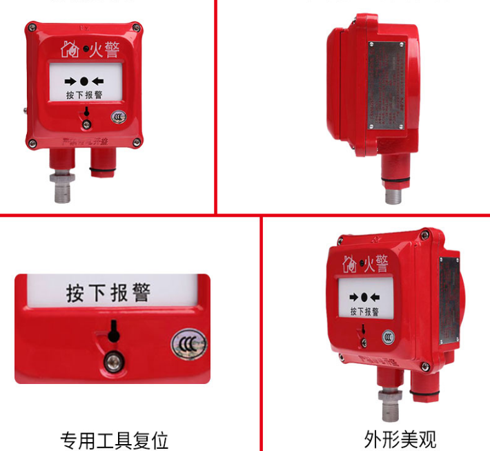 4.報警按鈕上的按片在按下后必須使用專用工具復位。